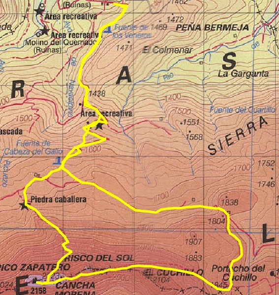 Aprovechando unos días de descanso, hoy me he llegado hasta Palacio, junto a Sotalbo (en el mapa de la TV aparece “Sotalvo”) en la provincia de Ávila, para subir al Pico Zapatero. A pesar de las recientes nevadas el sol ha podido con la nieve y, sin prácticamente rastro de ella, la ruta ha sido sencilla y sin complicaciones de ningún tipo.